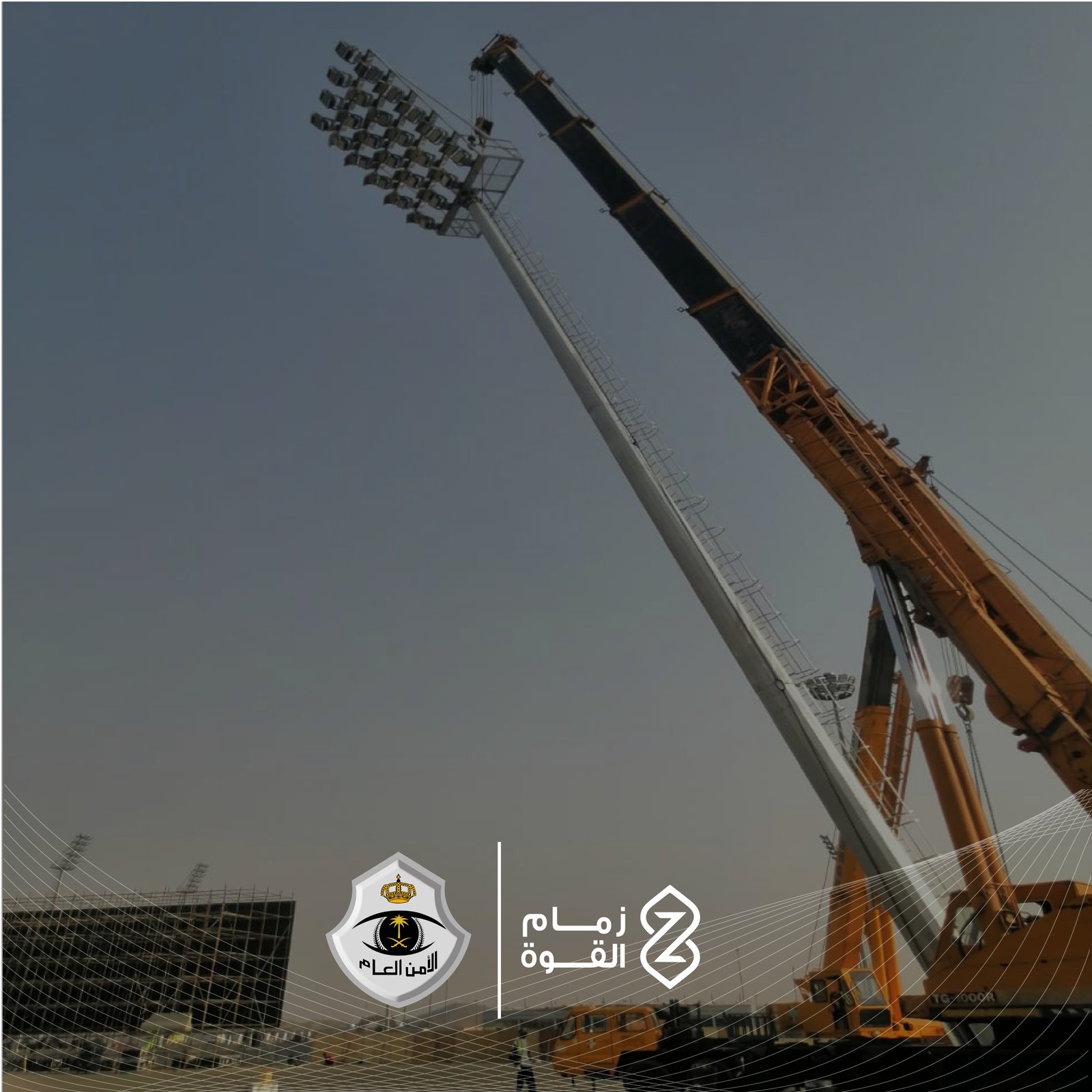 تركيب وتوريد إعمدة إنارة خاص بالميادين والملاعب بارتفاع 30 متر ومحمل عليه عدد (24) كشاف نوع (LED) وايضا توريد وتركيب وتوصيل وتشغيل واختبار لوحة توزيع رئيسية من النوع القائم على الأرض واللوحة الكاملة بالمركبات والقواطع الرئيسية والفرعية الأوتوماتيكية القابلة للضبط وتمديد وتوصيل واختبار كابلات نحاسية نوع XLPE تمديد مواسير من الـ PVC مفرغة لتمديد كابلات الانترنت والهاتف